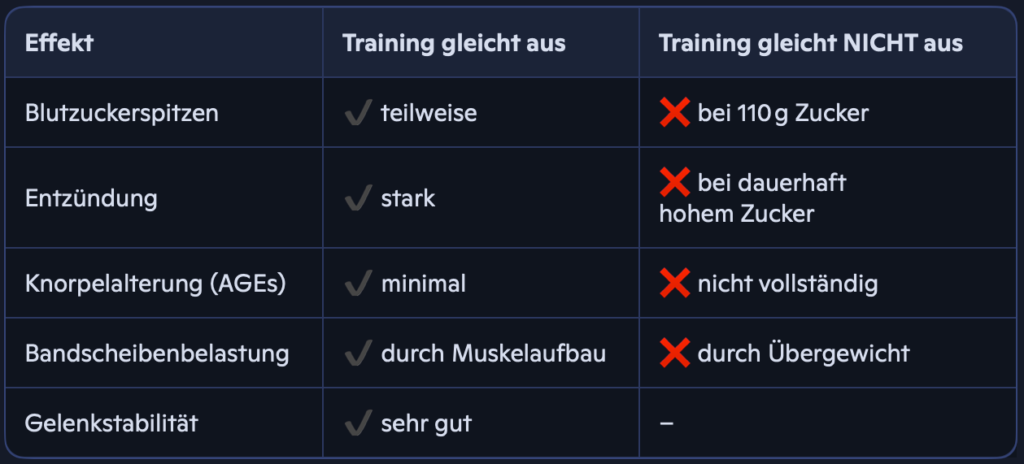 👉 Training hilft – aber Zucker bleibt ein Problem, wenn er dauerhaft hoch ist.