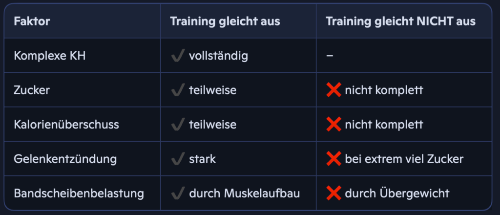 ⚠️ 3. Aber: Training kann Zucker nicht vollständig neutralisieren