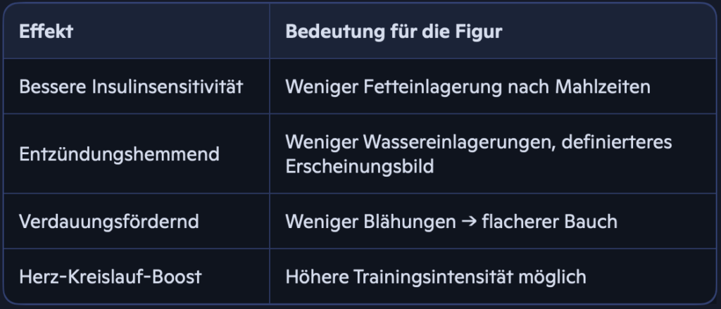 • Verbesserte Durchblutung → besserer Pump, effizienterer Nährstofftransport.